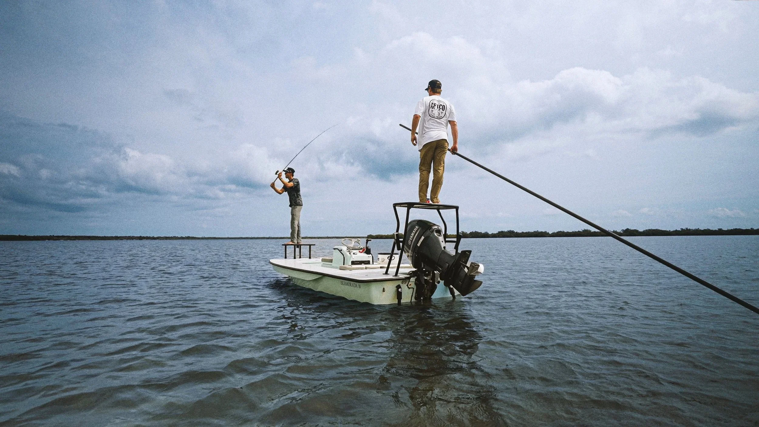 The skiff that is used is an 18ft Chittum 12 degree with Yamaha F70 and can accommodate two anglers taking turns up on the bow. During tarpon season, a “spider cage” is used with a net around it for line management while keeping you locked in for the next shot. Because of the 12 degree deadrise, this boat has a very nice ride while keeping everyone comfortable and mostly dry. Whether we are on the beach targeting tarpon, or in the back country stalking tailing redfish, this boat can provide those opportunities!